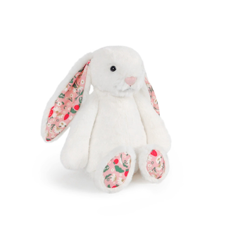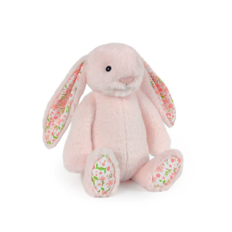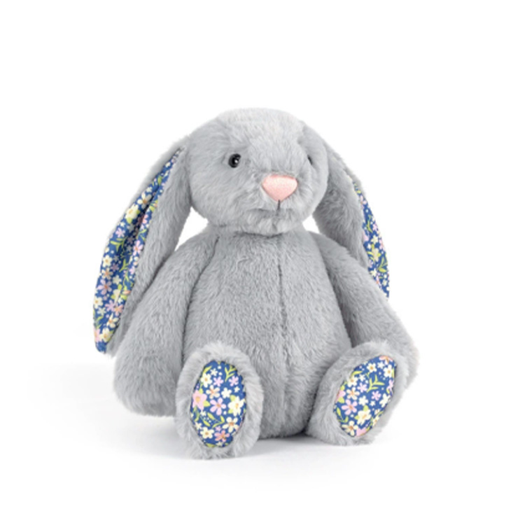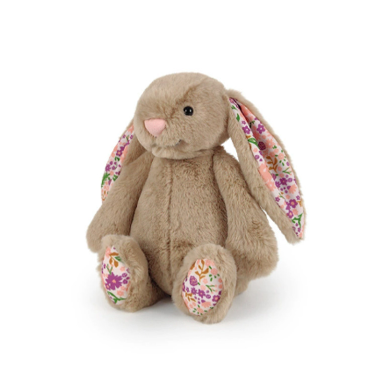 Tällä kanilla on söpö yleinen muotoilu. Se on neljä väriä ja näyttää kaiken kaikkiaan pehmeältä ja pörröiseltä. Kanin korvien ja jalkojen pohjat on koristeltu kankaalla, joissa on pieniä värillisiä kukkakuvioita, jolloin pieni kani näyttää vielä houkuttelevammalta. Siinä on pieni musta silmä ja pieni vaaleanpunainen nenä, ja sen koko kasvot näyttävät erittäin vilkkailta. Kokonaissuunnittelu ei ole vain söpö, vaan myös täynnä lämpimää tunnetta. Sen koko on noin 31 cm. Tätä pupun kanin täytettyä lelua ei voida käyttää koristeluun, vaan myös festivaalilahjana ystäville, mikä tekee siitä loistavan valinnan.