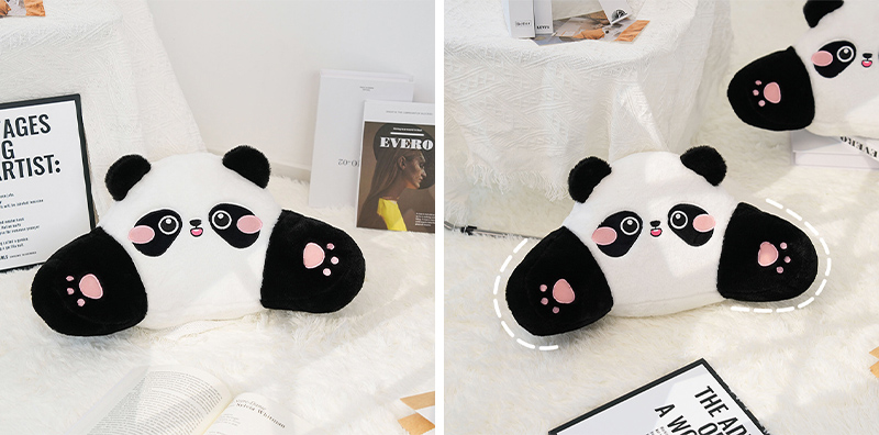 Toiminto:Panda -muhkea tyynyon söpö ja käytännöllinen. Sitä voidaan käyttää toimistoistuimena tai turvaistuimena väsymyksen lievittämiseksi. Sitä voidaan käyttää myös kodinsisustamiseen sohvana tai sängyn sisustuksena mukavuuden ja seuraamiseksi sekä stressin lievittämiseksi.